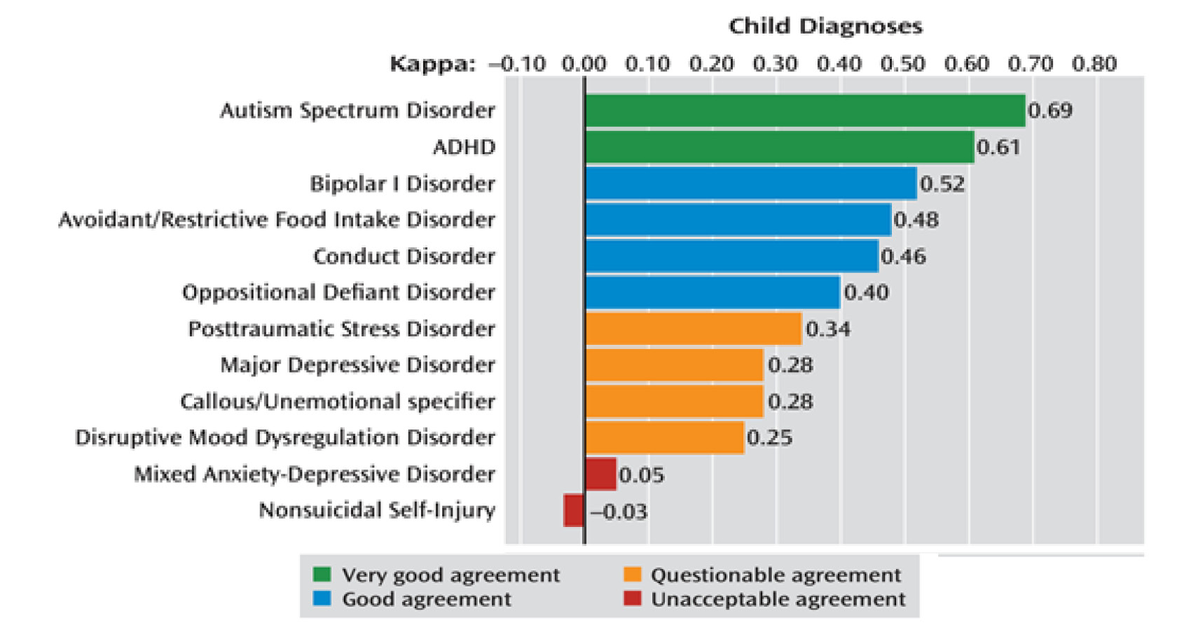 Рис. 3. Согласованность психиатрических диагнозов у детей (по Robert Freedman [33])