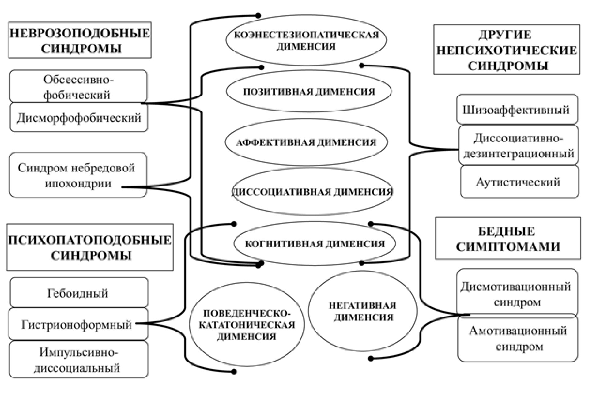 Важная научная задача современной клинической классификации аутохтонных (эндогенных) психических расстройств — продуктивное совмещение наиболее ценных для практического использования категориальных (синдромологических) характеристик с дименсиональными характеристиками, которые по-разному представлены (с точки зрения удельного веса каждой дименсии и глубины её проявления) в конкретной клинической картине заболевания.