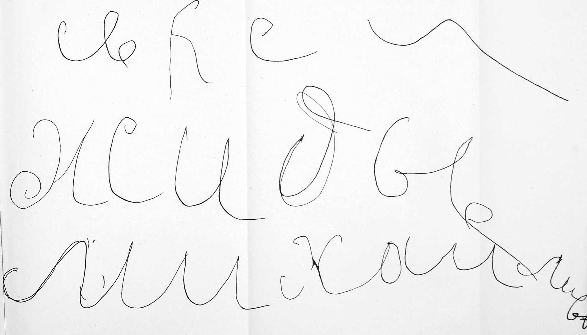 Исходя изъ этого положенія, при маніи мы можемъ имѣть рядъ образчиковъ письма отъ повышеннаго самочувствія до того состоянія, когда письмо является, какъ рядъ линій ничего собою не выражающихъ, и, наконецъ, совсѣмъ исчезаетъ. Но отсутствіе возможности письма въ данномъ случаѣ будетъ происходить по причинамъ противоположнаго свойства, чѣмъ при меланхоліи. Тамъ мы имѣли все уменьшающуюся силу психо-моторнаго импульса до полнаго заторможенія, здѣсь встрѣчаемъ усиленіе и такую быстроту импульса, когда мысль не успѣваетъ воплощаться въ движенія необходимыя для письма.