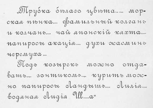 Мы позволимъ себѣ привести нѣсколько образчиковъ письма маніаковъ изъ имѣющихся въ нашемъ распоряженіи.