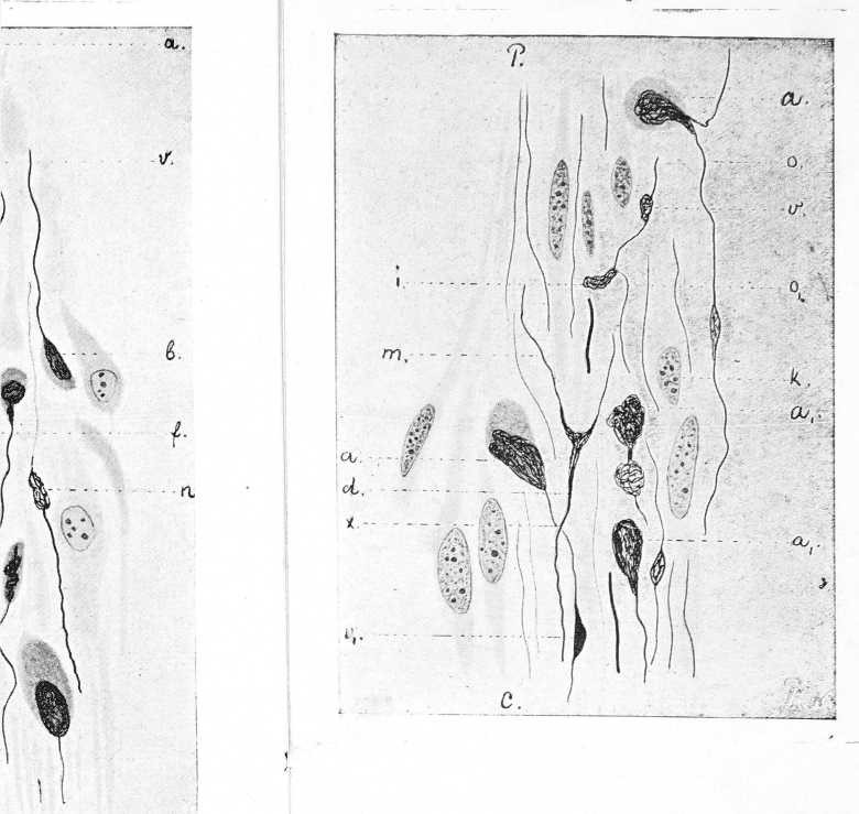 Вотъ вкратцѣ гистологическія измѣненія, которыя намъ удалось подмѣтить на препаратахъ, импрегнированныхъ серебромъ по способу Ramon у Cajal’я.