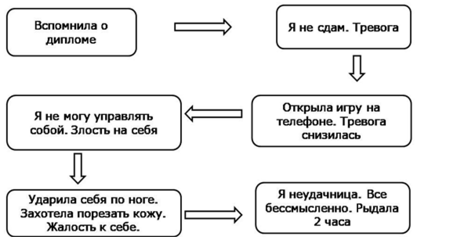 Рис. 1. Пример анализа поведенческой цепочки пациентки А. 22 лет