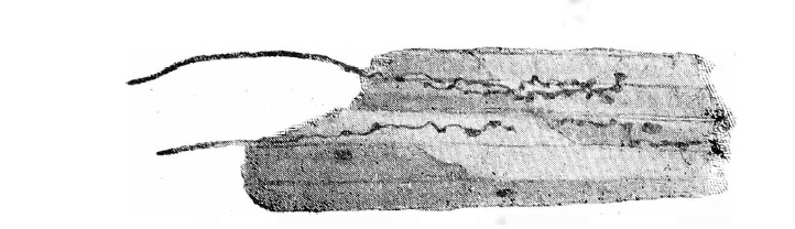 19/XII 1908 года. Собака пудель. Вѣсъ 1 пудъ 8 фунтовъ. Подкожное впрыскиваніе 3% воднаго раствора morphii hydrochlorici въ количесовѣ 6 ccm. Въ теченіе операціи израсходовано 7 ccm. хлороформа. Перерѣзаны оба nn. vagosympathici тотчасъ подъ ganglion cervicale inferius (собака умерла 21/XII 1908 года вслѣдъ за тѣмъ, какъ была случайно, по ошибкѣ накормлена служителемъ, Я все же привелъ извлеченіе изъ протокола этого опыта, такъ какъ мнѣ удалось въ сердцѣ этой собаки окрасить метиленовою синью не только нервы, но даже и концевые нервные аппараты два дня спустя послѣ перерѣзки блуждающихъ нервовъ, а эти аппараты суть именно окончанія волоконъ этого ствола).