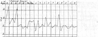 Какъ видно изъ температурой кривой этого случая, t0 здѣсь повышалась значительно, достигая до 39,2 (см. крив. № 12), въ тоже время у больного отмѣчался знобъ, головная боль и др. явленія.