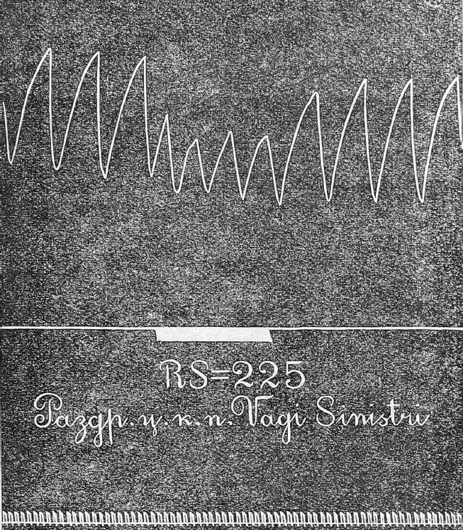 9 ч. 47'. Соединен. съ пиш. приб., бараб. пуш. въ ходъ. Разяраж. ц. к. n. vagi sinis. при RS=200 экспираторная остановка, дважды прерываемая инспираціями. Бараб. останов., трахеал. канюл. разъединена. Число дыханій до раздраж.= 12 въ 1'. Провѣтриваніе бутыли.