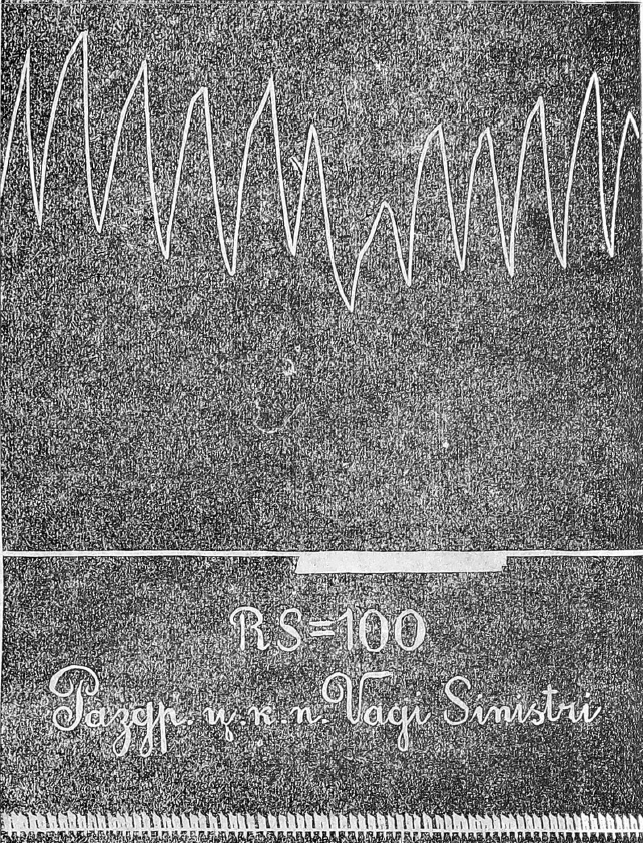 Мѣстное охлажденіе n. vagi sin.: притокъ теплой воды прекращенъ, пущена холодная (t°=1°) вода.