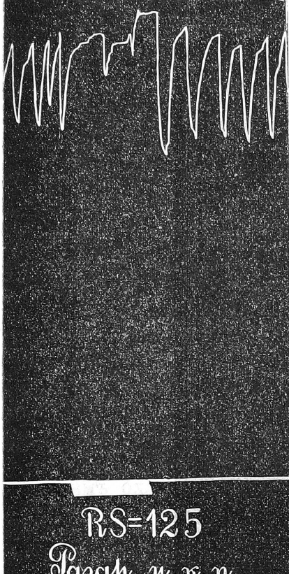 10 ч. 46'. Соединен. съ пиш. приб., бараб. пущ. въ ходъ. Раздраж. ц. к. n. vagi sinis. при RS=130—глубокая инспирація, инспираторная остановка дыханія. Бараб. останов.., трахеал. канюл. разъединена. Число дыханій до раздраж.=14 въ 1'. Провѣтриваніе бутыли.