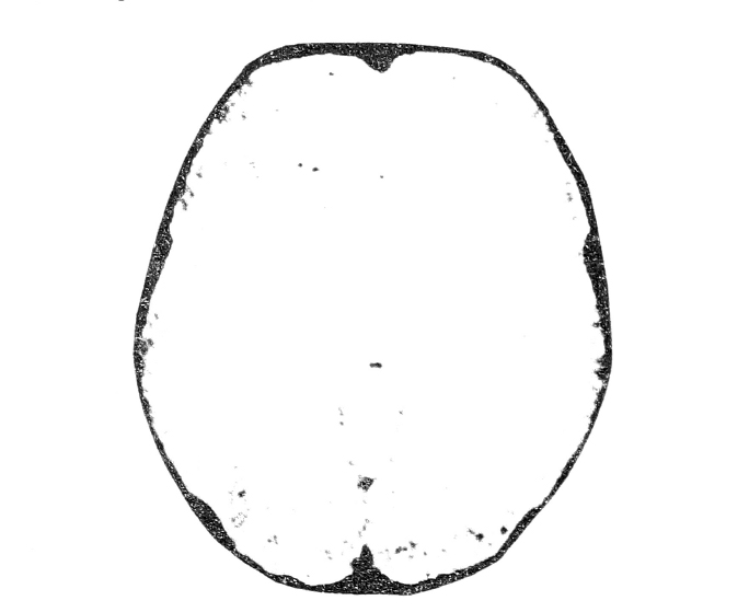 Глазное дно не изменено, компьютерная томография головного мозга выявила гидроцефально-атрофические изменения (рисунок). В спинномозговой жидкости: белок — 0,84 г/л, цитоз — 411 х 10б (лимфоцитарный), сахар — 2,8 ммоль/л. Циркулирующие