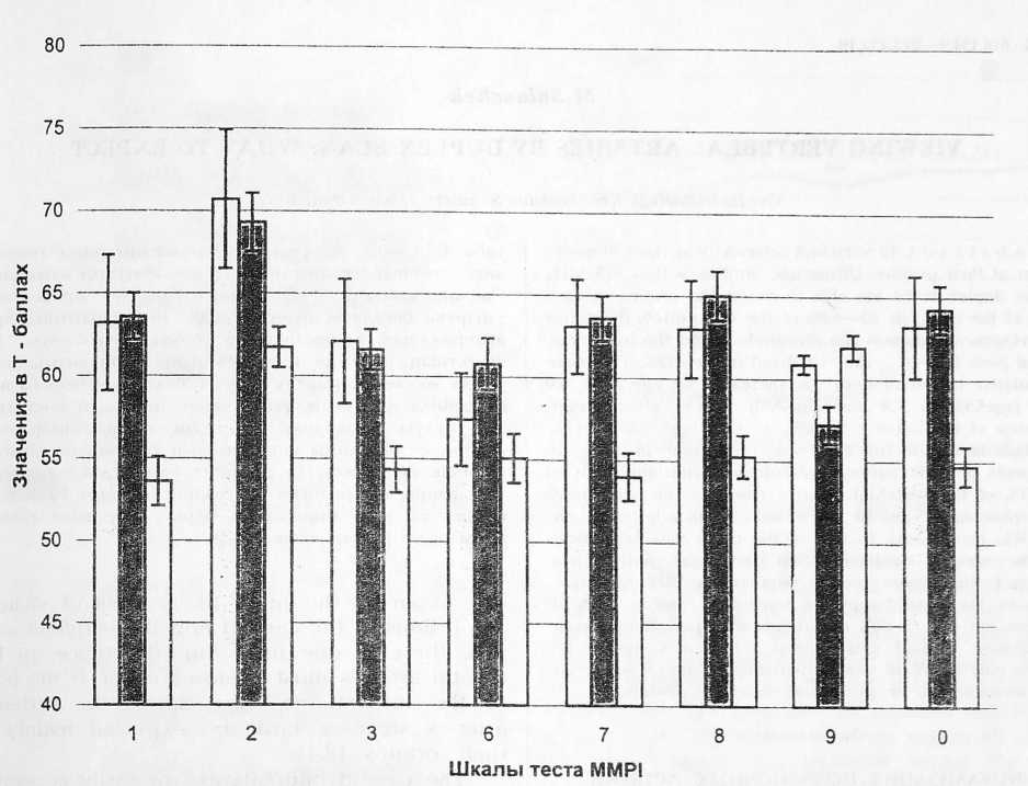 Рис. 3. Гистограмма усредненных показателей по шкалам теста MMPI