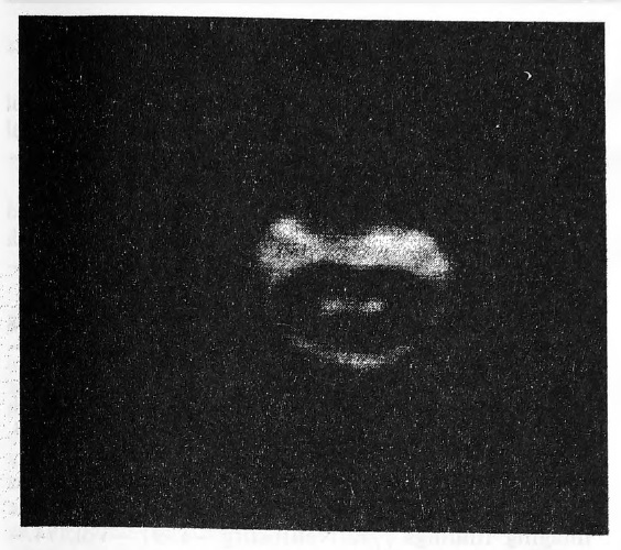 Рис. 2. Гидрографический режим аксиального среза: визуализируется сплющенная форма полости с наличием сообщения между полостью и субарахноидальным пространством спинного мозга