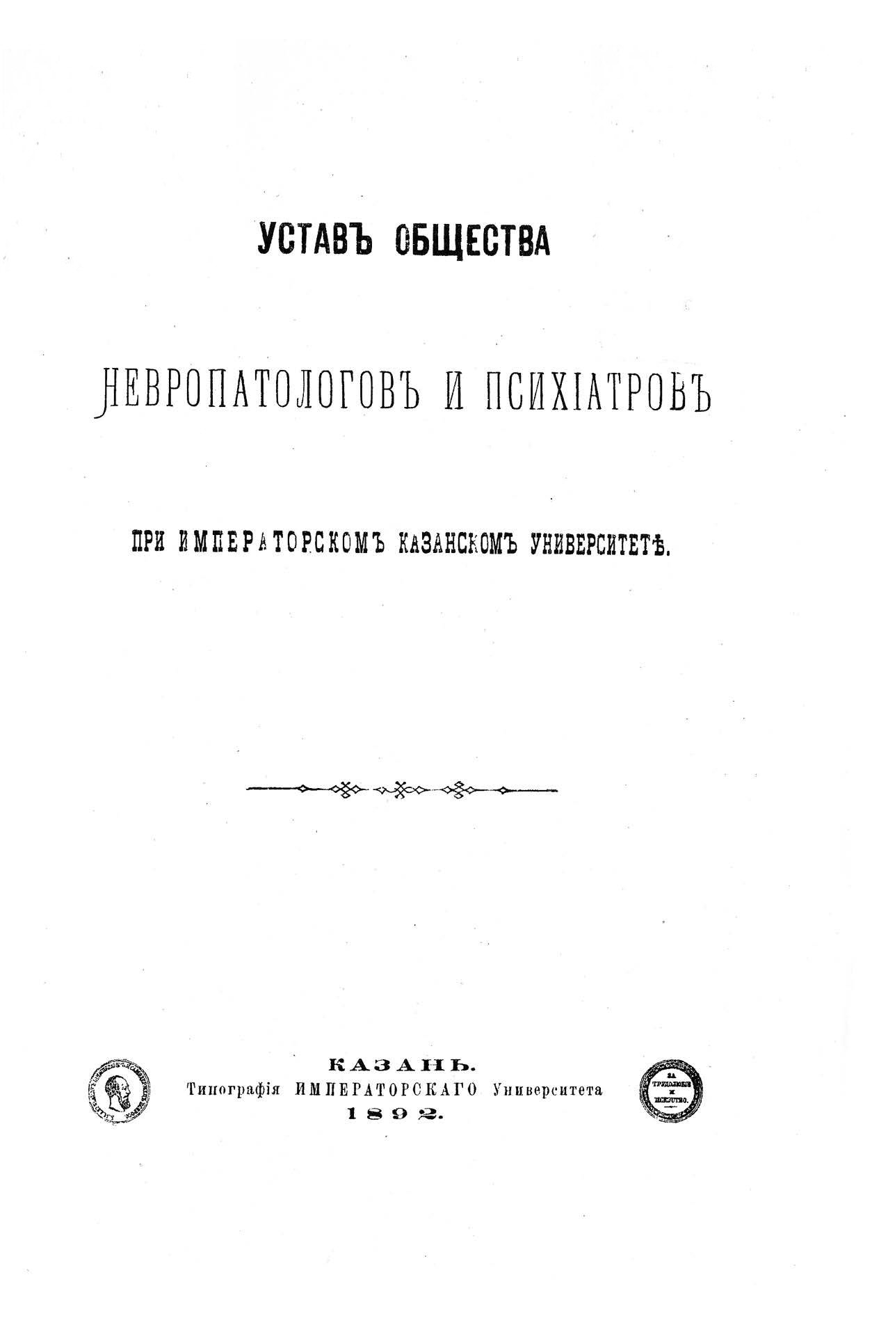 7 Устав общества невропатологов и психиатров при Императорском Казанском университете.—Казань, 1892.