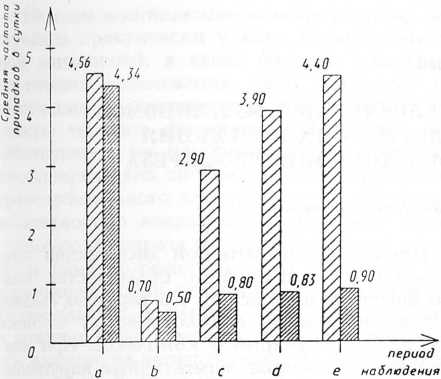 Рис. 2. Динамика частоты припадков у больных височной эпилепсией.