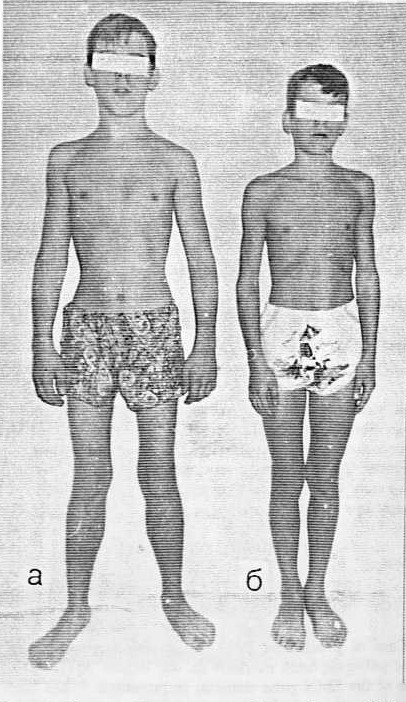 Пробанд К. (рис. 1, III, 3), 16 лет, русский, поступил с жалобами на слабость в ногах, частое падение, невозможность бегать и прыгать, быструю утомляемость, затруднения при подъеме по лестнице, вставании из положения лежа и сидя, похудание мышц рук и ног, периодические подергивания в мышцах плечевого пояса. Год назад без видимых причин появилась слабость в ногах при физической нагрузке. С течением времени мышечная слабость нарастала: стало трудно подниматься по лестнице, вставать из положения сидя, часто падал, затем появилась слабость в руках, похудели мышцы плечевого и тазового пояса.