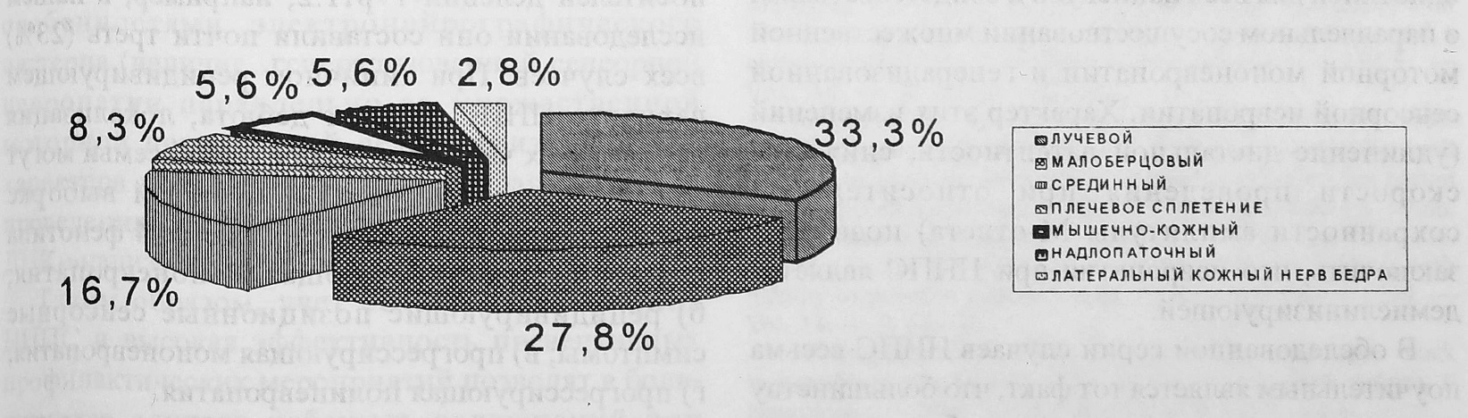 Рис. 2. Дебютная частота поражения отдельных нервов.
