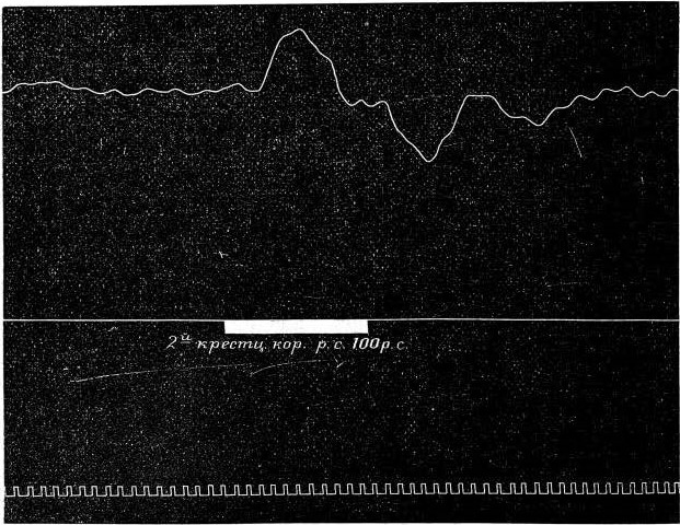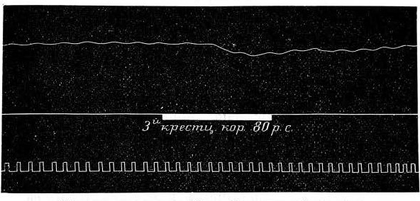 Фиг. 32, Taf. XVIII по всѣмъ вѣроятіямъ отвѣчаетъ тому, что мы имѣли въ опытѣ съ двойной регистраціей по Courtade и Guyon’у. (См. фиг. 10).