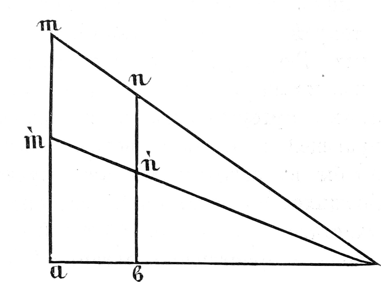 Исходя изъ факта, что паденіе давленія жидкости, текущей по цилиндрической горизонтальной трубкѣ, происходитъ такимъ образомъ что уровни жидкостей въ піезометрахъ, размѣщенныхъ по длинѣ трубки, образуютъ прямую линію, проходитъ черезъ вытечное отверстіе, гдѣ боковое давленіе равно нулю,—авторъ на основаніи простой теоремы о подобіи треугольниковъ приходитъ къ выводу, что отношеніе высотъ давленія въ двухъ піезометрахъ равно отношенію ихъ разстоянія отъ конца трубки. Отношеніе это, т. е. отношеніе показанія 2-го піезометра къ показанію 1-го,—считая по теченію, которое авторъ обозначаетъ черезъ w. и которое, конечно, всегда представляетъ правильную дробь, не зависитъ отъ величины напирающаго столба жидкости и остается постояннымъ для одной и той же длины трубки при неизмѣненномъ разстояніи между піезометрами. Отсюда обратный выводъ: „если въ горизонтальный цилиндрической трубкѣ отношеніе величинъ давленія, найденныхъ въ двухъ пунктахъ пути (Gtrombahu) остается однимъ и тѣмъ же при различной абсолютной высотѣ давленія, то это значитъ, что наступило измѣненіе въ напирающей силѣ, а не въ размѣрахъ трубки (сопротивленія)“ (р. 565).
