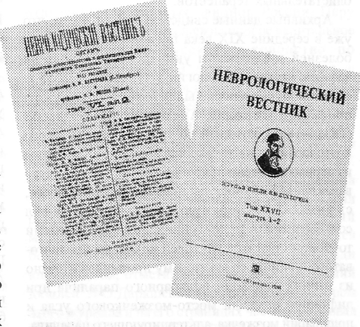 Печатным органом общества стал журнал «Неврологический вестник»***, издававшийся под редакцией В.М. Бехтерева с 1893 по 1918 г. С 1880-х годов по 1918 г. в России существовало 18 периодических изданий по неврологической тематике, но большая часть из них выходила не более одного-пяти лет подряд. В числе самых стабильных и авторитетных были три журнала: «Обозрение психиатрии, неврологии, неврологии и экспериментальной психологии» под редакцией В.М. Бехтерева (С.-Петербург, 1896—1918), «Журнал невропатологии и психиатрии им. С.С. Корсакова (Москва, 1901— 1917) и «Неврологический вестник» (Казань,1893—1918). В 1993 г. нами был возрожден журнал «Неврологический вестник» с присвоением ему имени основателя — В.М. Бехтерева. В январе 2003 г. нашему «Вестнику» исполнилось 110 лет. Прошлое, настоящее и будущее Казанского неврологического общества неотделимы от истории «Неврологического вестника» им. В.М. Бехтерева.