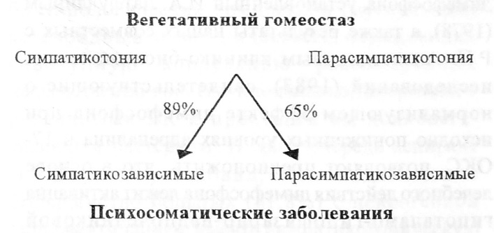 Рис. 1. Наследственная взаимозависимость вегетативного гомеостаза и психосоматических заболеваний