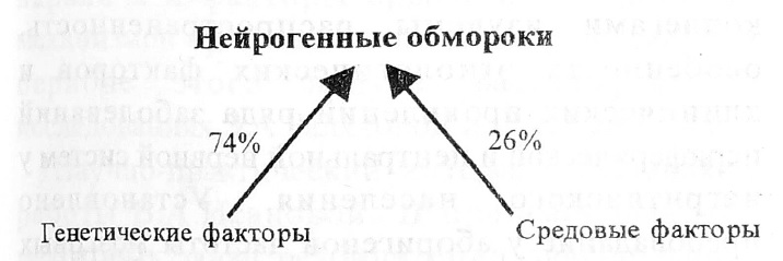 Ранее проведенный аспирантом Д.Д. Гайнетдиновой сегрегационный анализ 115 семей, в каждой из которых были зафиксированы случаи НО, показал, что доля генетических факторов в развитии НО составляет 74,0% (рис. 3). Был сделан вывод, что НО могут быть отнесены к кругу семейных форм патологии и среди врожденных факторов их развития важнейшим является унаследованный парасимпатический тип реагирования ВНС.
