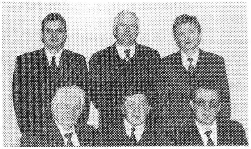 Заведующие ныне существующих казанских кафедр нервных болезней: сидят (слева направо) — проф. М.Ф. Исмагилов, проф. Ф.А. Хабиров, проф. Г.А. Иваничев; стоят (слева направо) — доц. В.Ф. Прусаков, проф. В.И. Данилов и проф. Э.И. Богданов