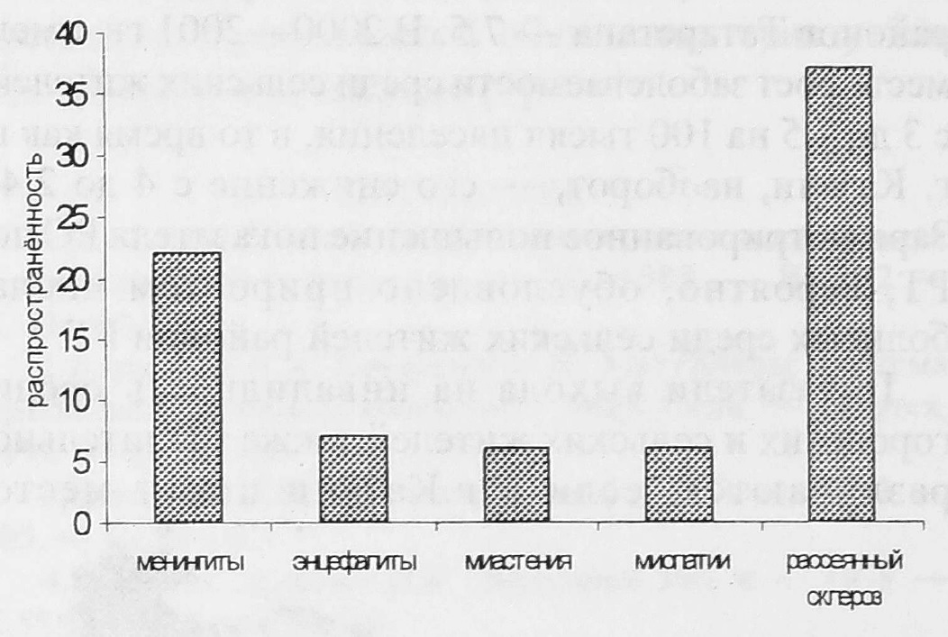 Рис. 1. Распространенность PC, ряда иммуновоспалительных, иммуноаллергических заболеваний нервной системы в Республике Татарстан на 100 тысяч населения в 2001 г