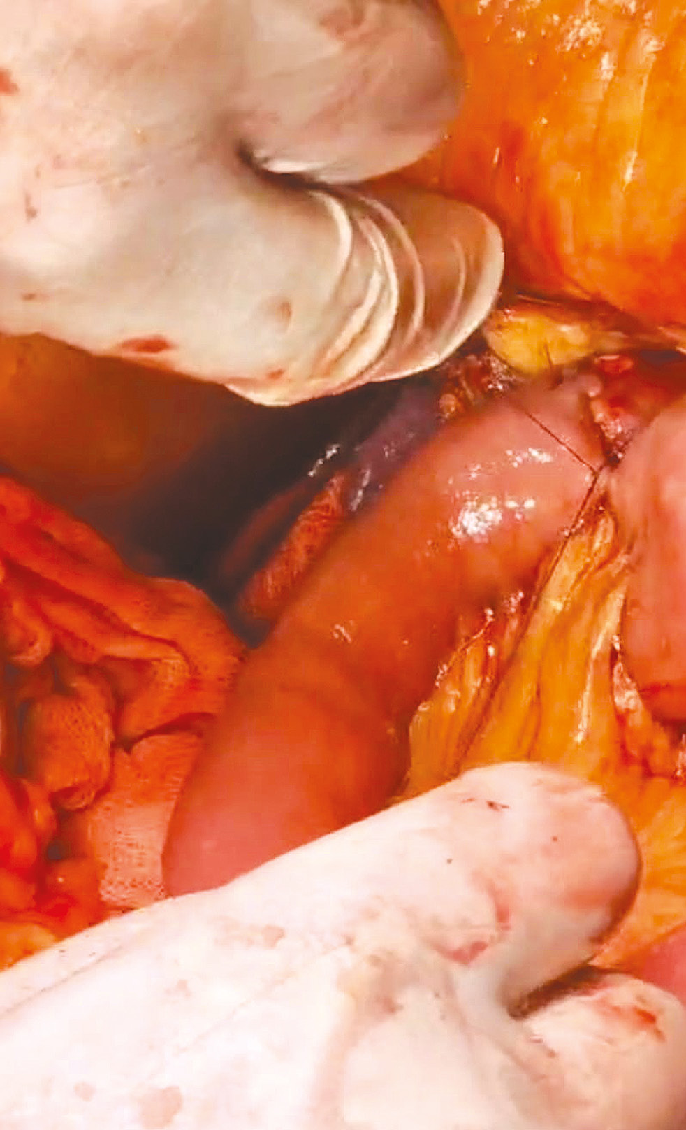 Рис. 3. Вид гастроеюноанастомоза «конец-в-бок» однорядным непрерывным швом нитью Stratafix 3-0.
