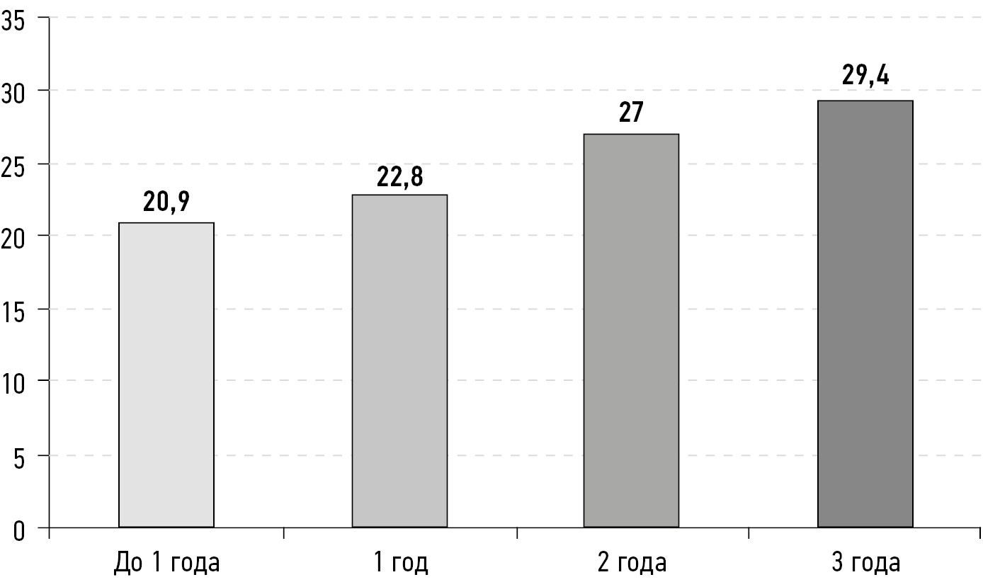 Распределение детей целевой группы по возрасту, получивших услуги ранней помощи в 2019 г., представлено на рис. 2.