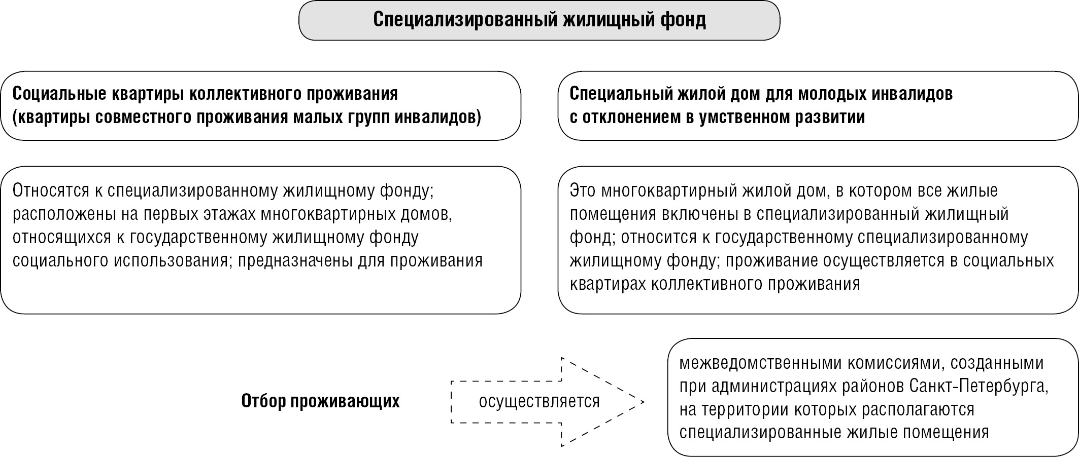 Рис. 1. Схема использования специализированного жилого фонда для организации сопровождаемого проживания в Санкт-Петербурге