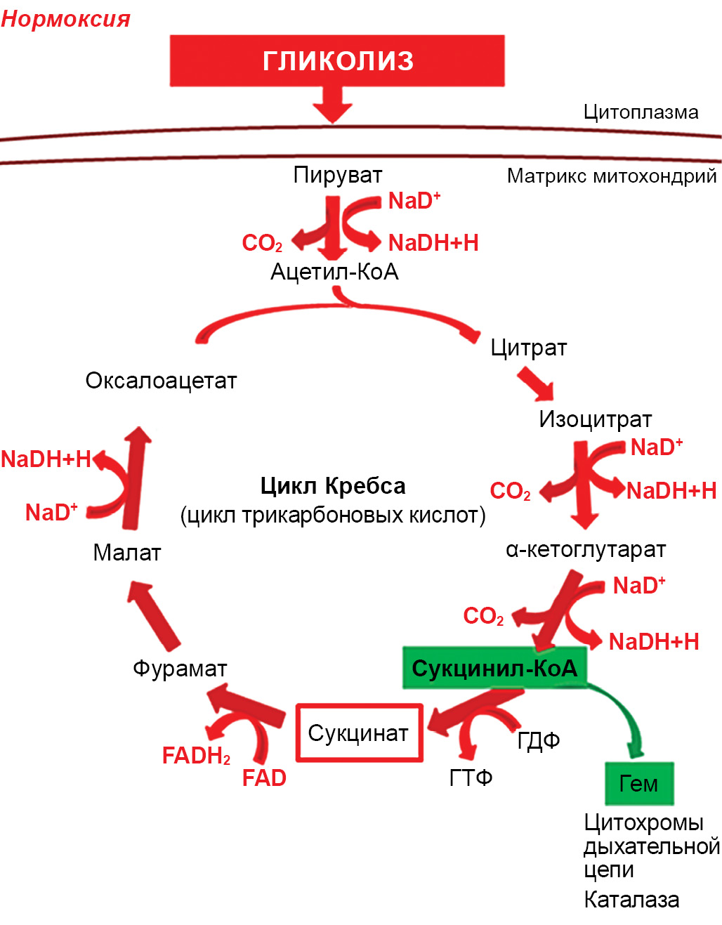 Рис. 1. Цикл трикарбоновых кислот в условиях нормоксии.