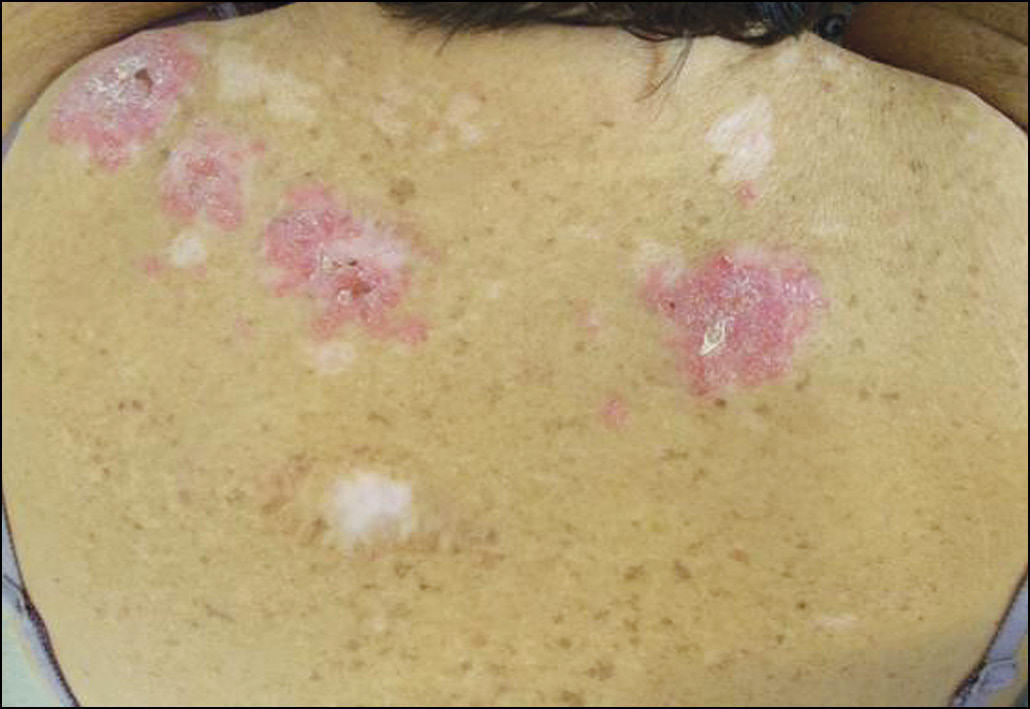 The photo task in the form of multiple erythematous-squamous foci in open areas of the skin in a 60-year-old patient is described. The trigger factor for this disease was insolation. Diagnosis was verified histologically.