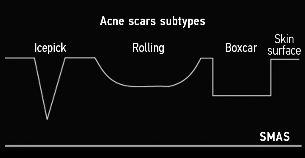 Рис. Подтипы атрофических рубцов [49] / Fig. Subtypes of atrophic scars [49]