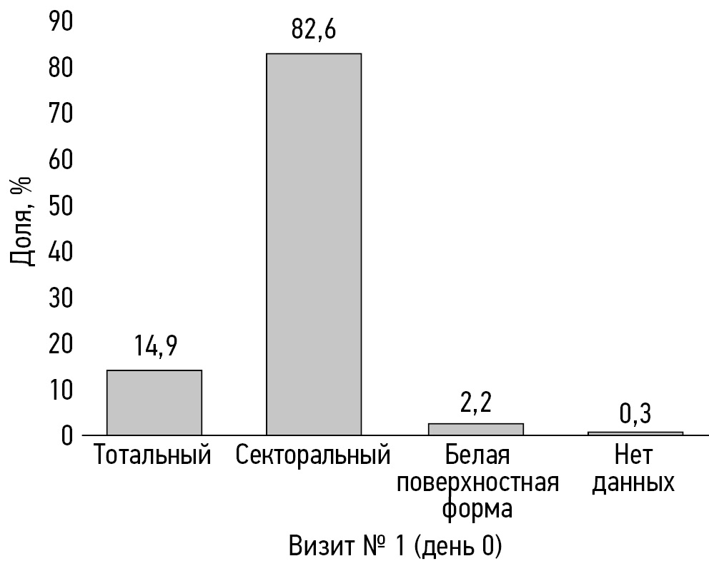 По типу поражения ногтевых пластинок пациенты распределены следующим образом:
