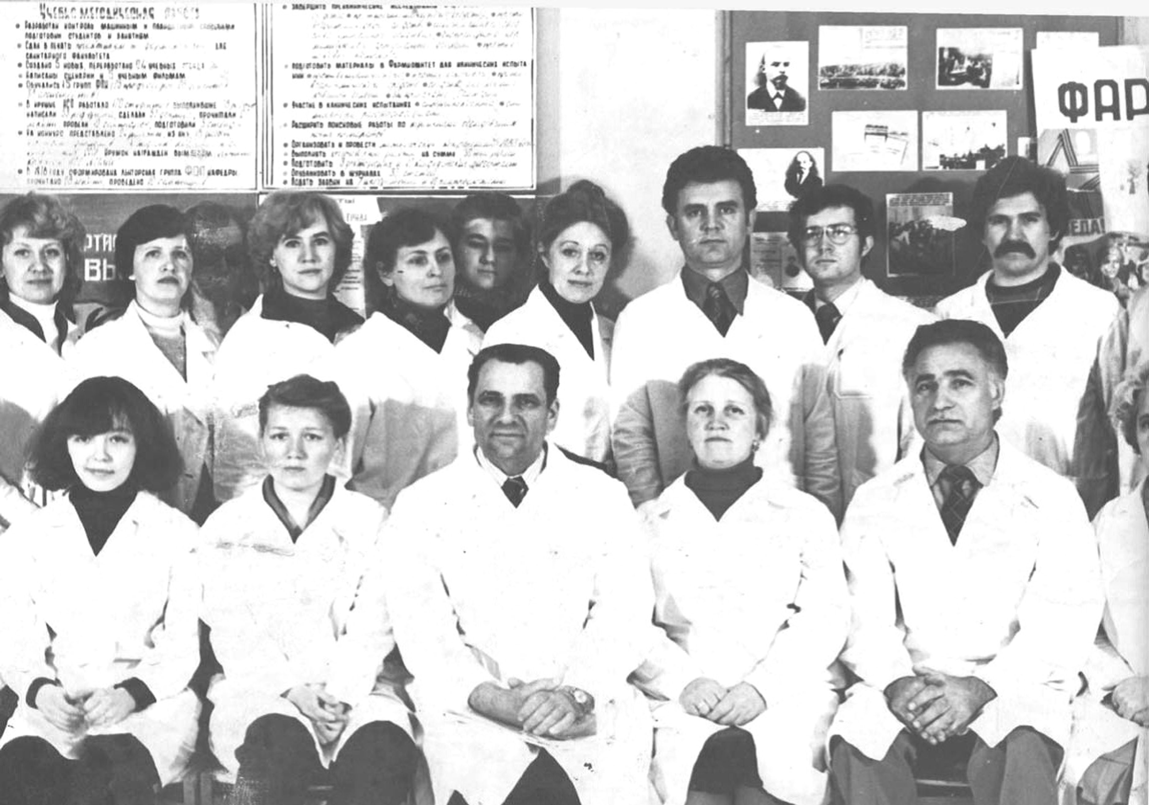 Fig. 4. Among colleagues at the Department of Pharmacology of the Leningrad State Sanitary and Hygienic Medical Institute (P.P. Denisenko in the center)