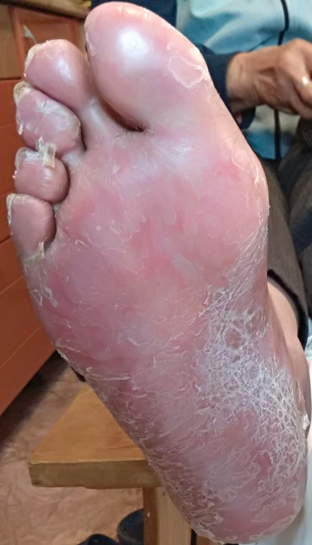 Рис. 2. Ладонно-подошвенный синдром на фоне лекарственной противоопухолевой терапии капецитабином.