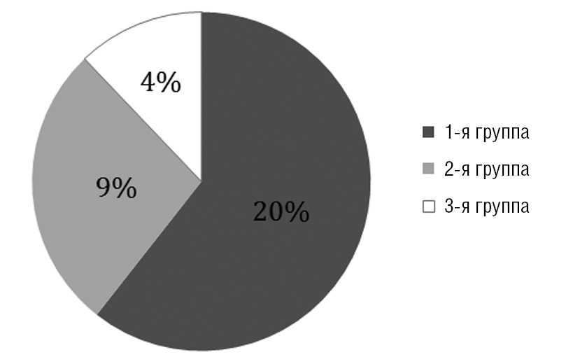 Полученные данные обрабатывали с помощью программы Microsoft Office Exсel (2010) и пакета прикладных статистических программ для медико-биологических исследований Statistica 10.0/W RUS. Для анализа количественных переменных применяли метод однофакторного дисперсионного анализа и критерий Манна-Уитни, анализ категориальных переменных проводился при помощи критерия χ2 Пирсона. Достоверность отличий внутри группы, полученных за период наблюдения, оценивали с помощью t-критерия Вилкоксона. Различия считались достоверными при p < 0,05.