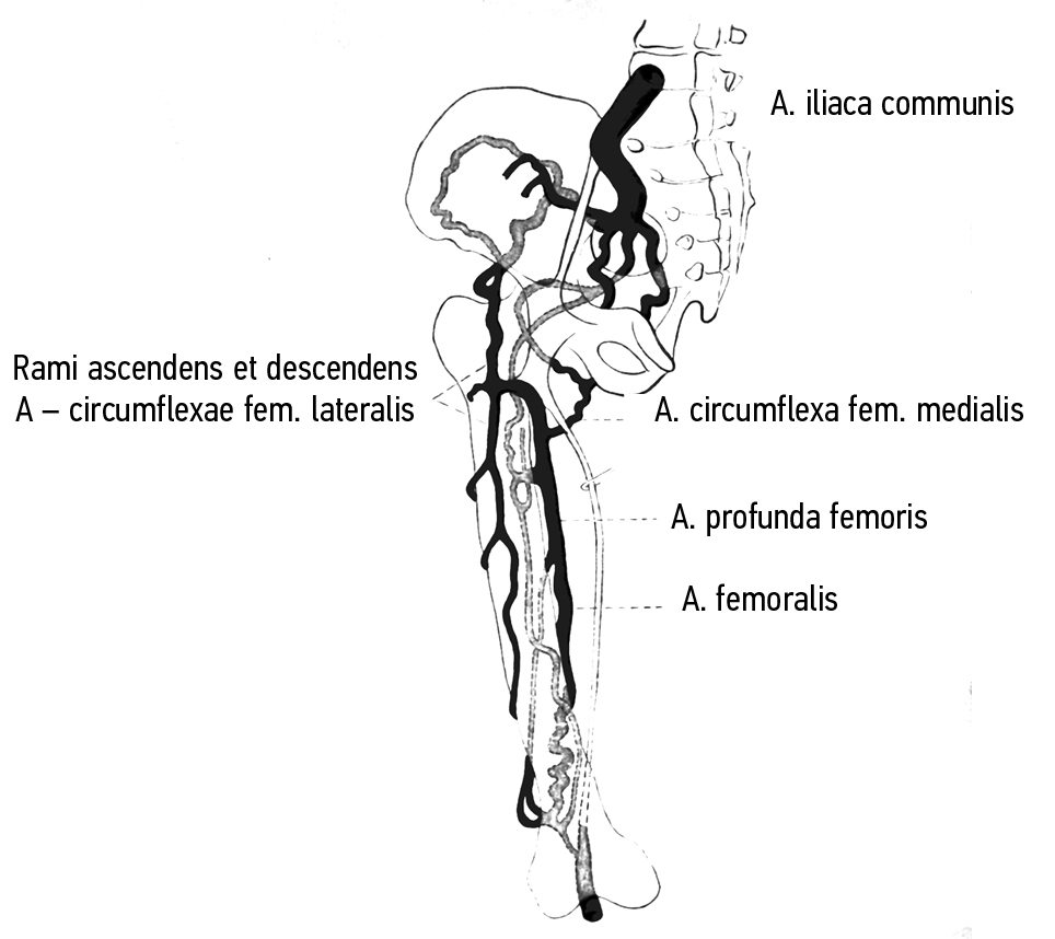 Рис. 2. Развитие окольных путей кровотока при нарушении проходимости наружной подвздошной артерии. Рисунок с препарата, изготовленного В.Н. Тонковым