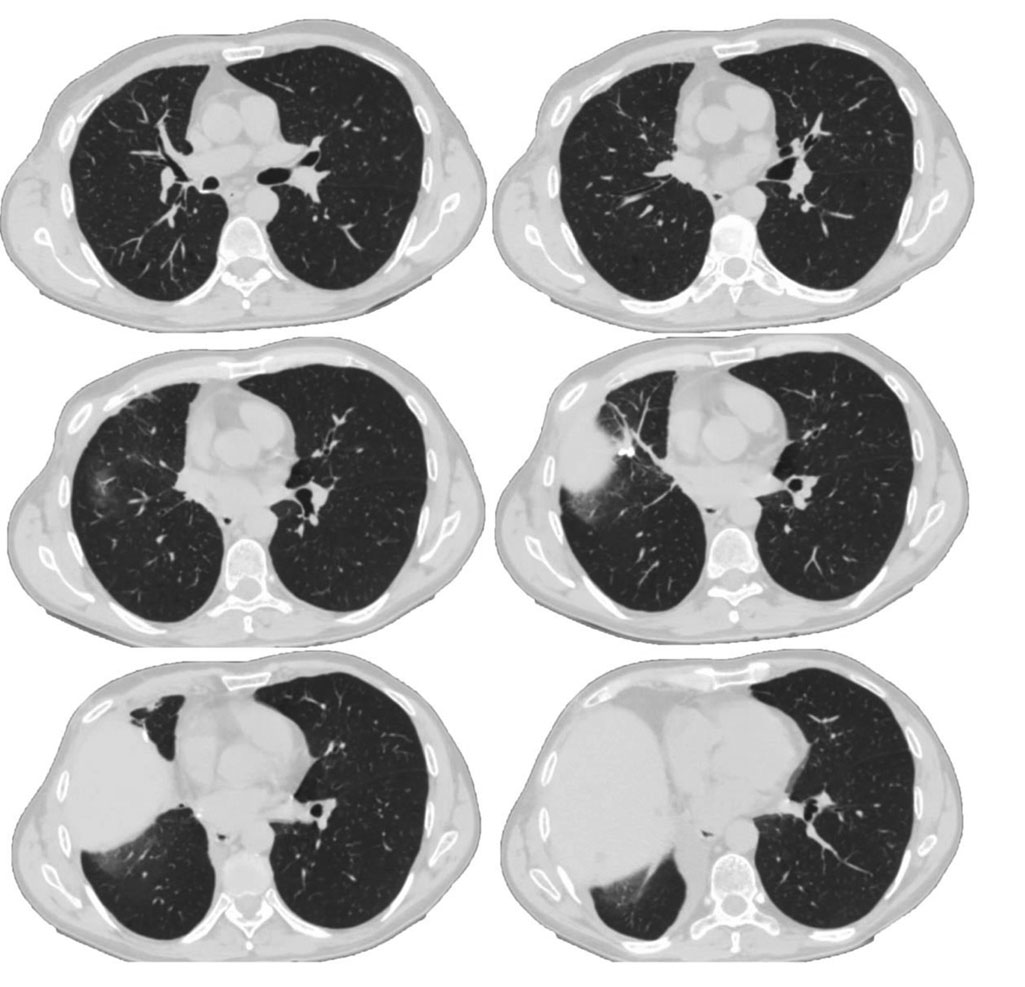 Fig. 1. Spiral computed tomography of patient B’s chest organs during initial examination