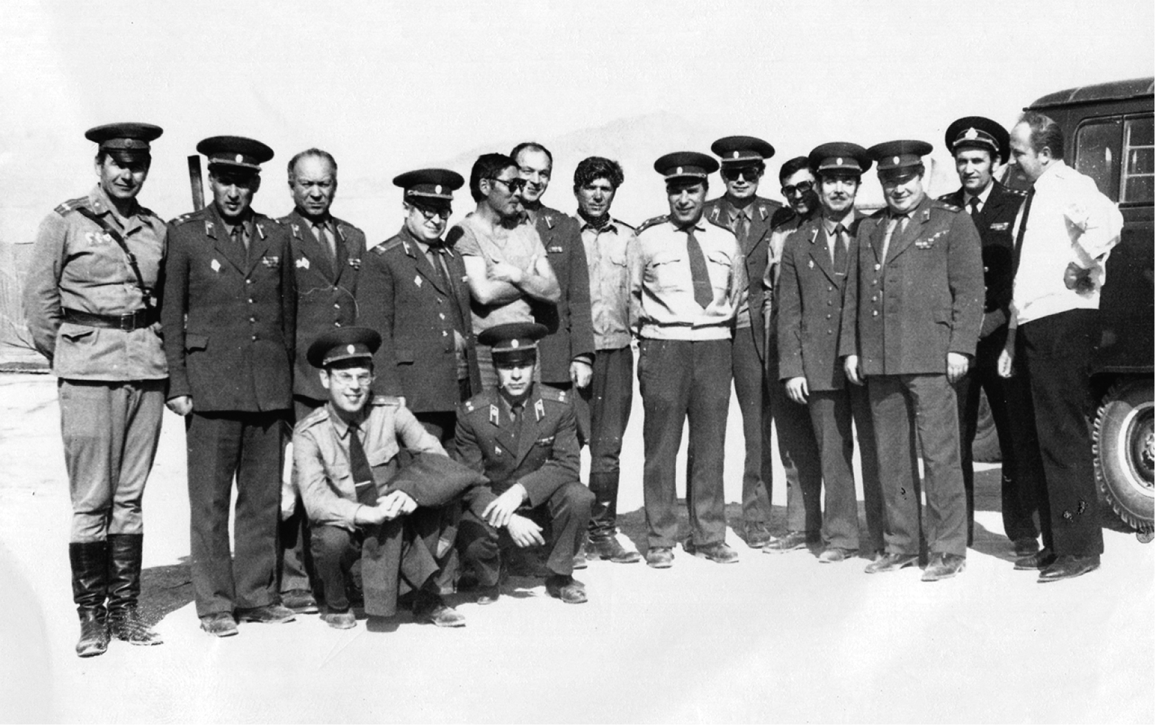 Fig. 2. Research group and representatives of the medical service of the 40th Army (fourth from the right–B.A. Chakchir, Afghanistan, 1981)