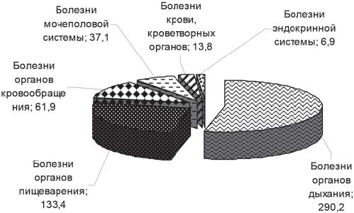 Показатель уровня общей заболеваемости болезнями органов пищеварения в 2014 г. Составил 312,24‰ (рис. 2) и занимал второе ранговое место среди показателей общей заболеваемости терапевтической патологией обследованных военнослужащих.