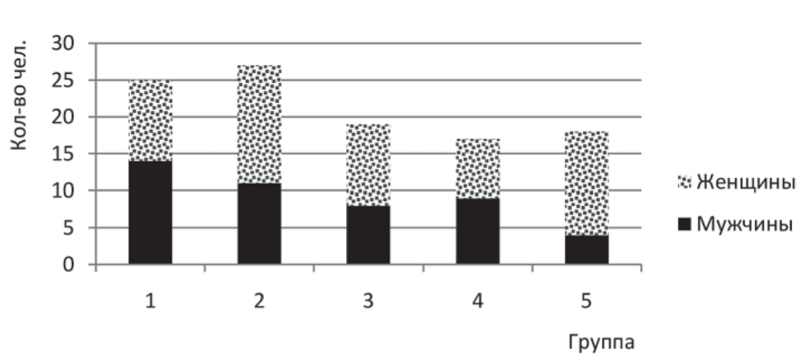 Рис. 1. Распределение пациентов по полу в исследуемых группах
