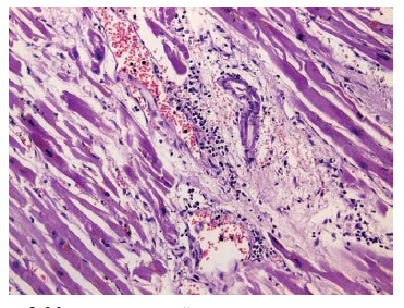 Выполнялось микроскопическое исследование архивных микропрепаратов, особое внимание уделено изучению миокарда, почек, головного мозга.