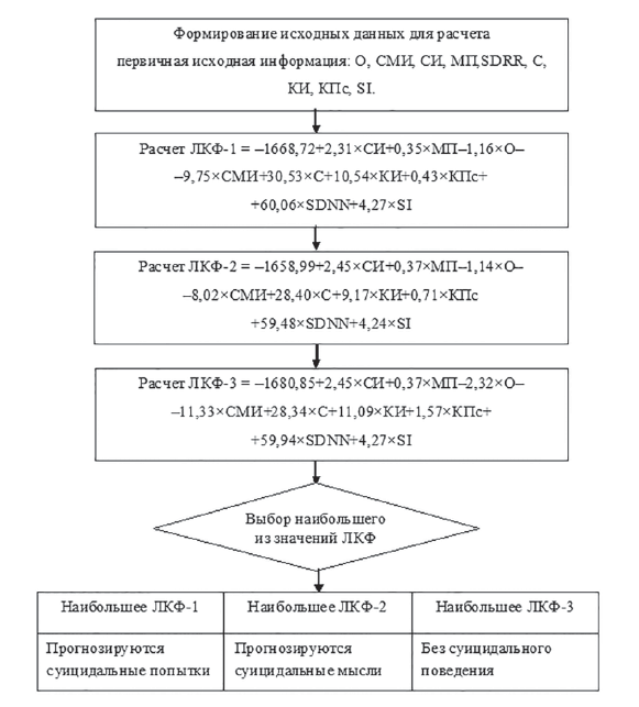 Рис. Алгоритм определения прогноза суицидального поведения пациентов, страдающих пограничной психической патологией