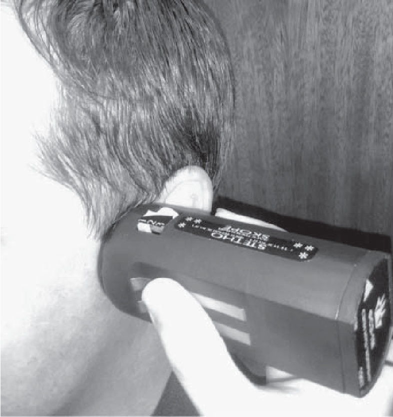 Рис. 1. Выполнение аускультации ВНЧС с помощью электронного стетофонендоскопа