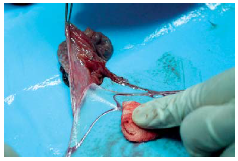 Материалы и методы. Забор амниотической оболочки выполняли в стерильных условиях операционной после планового кесарева сечения. Перед забором АМ получали согласие рожениц. АМ выделяли путем механического отделения ее от спонгиозного слоя амниона (рис. 1).