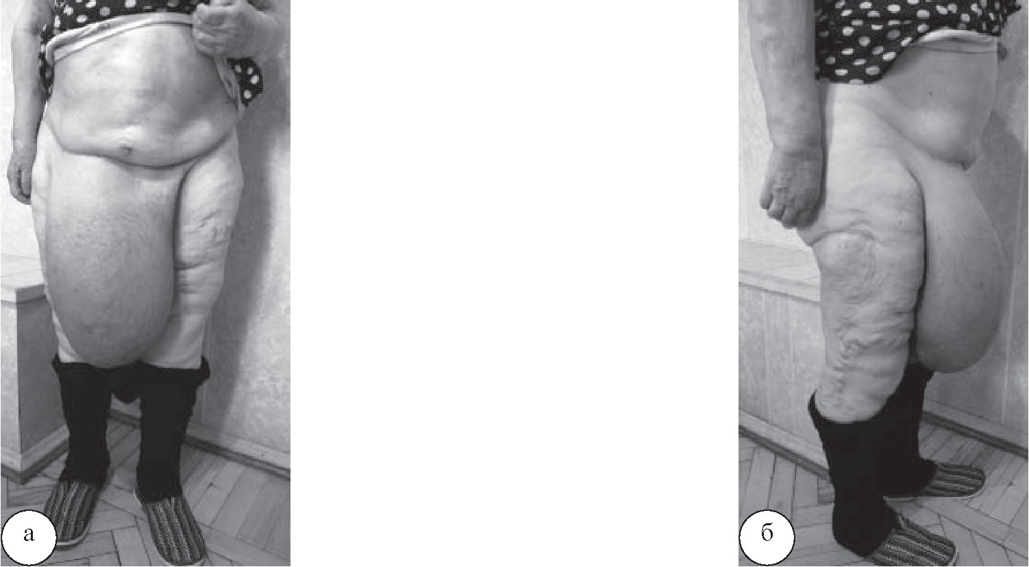 Рис. 1. Общий вид больной: а – спереди; б – сбоку