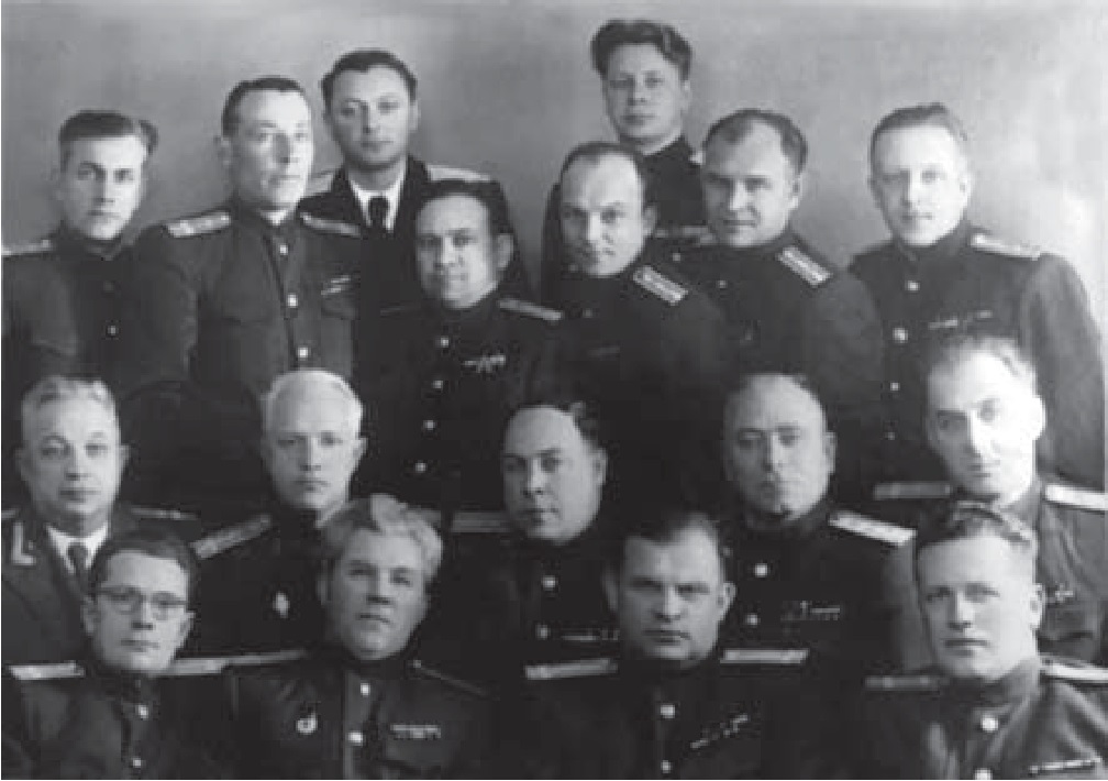 Рис. 2. Полковник медицинской службы А.И. Рыбаков (второй ряд по центру) в окружении участников заседания стоматологической секции учёного совета при начальнике Главного военно-медицинского управления: А.В. Клементова, В.В. Фиалковского, Г.М. Иващенко, С.Н. Угулавы, В.И. Кулаженко, А.В. Васильева, Н.М. Александрова и др. (Ленинград, 1957 г.)