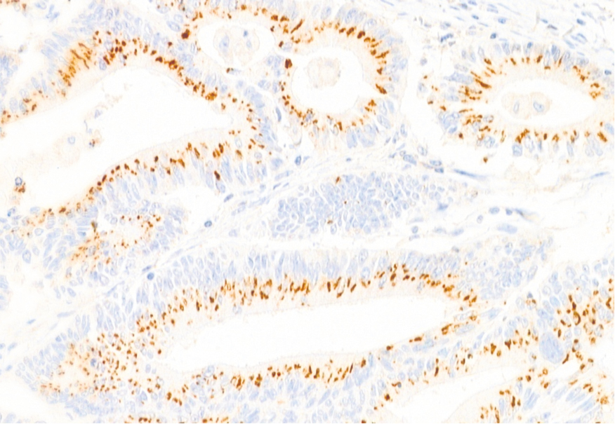 Важнейшим направлением в улучшении результатов лечения больных КРР, несомненно, является совершенствование алгоритмов диагностики данного заболевания. Согласно современным онкологическим позициям, обследование больных раком толстой кишки, наряду с ранним выявлением опухоли, должно обеспечивать комплексную оценку потенциала ее агрессивности. В этой связи особый интерес представляет иммуногистохимическое (ИГХ) исследование аденокарциномы толстой кишки, позволяющее оценить ее молекулярно-биологические свойства [4, 6]. Вместе с тем до настоящего времени не разработаны алгоритмы ИГХ диагностики КРР, а сведения о клинической значимости маркеров носят противоречивый характер [2, 4, 7].