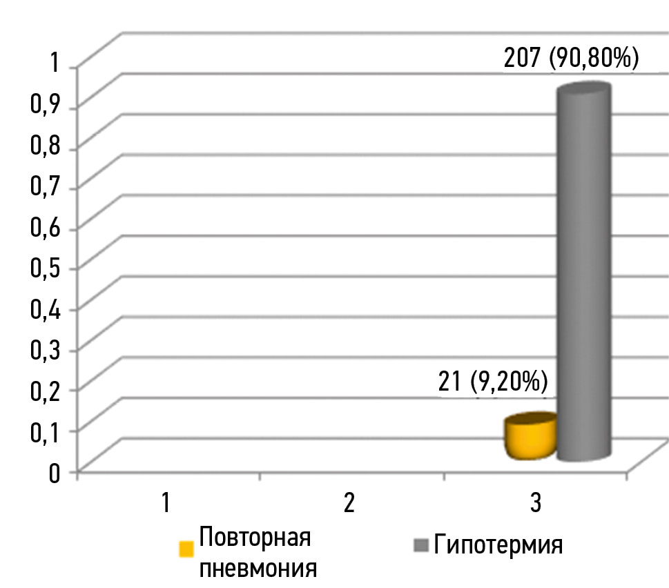 In our study of 266 recruits, the frequency of hypothermia was found in only 207 people (90.8%). Repeated cases of pneumonia accounted for only 9.2% (Fig. 5).