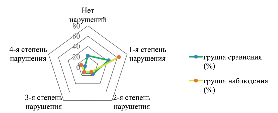 Рис. Распределение больных обеих групп по степеням нарушения ГРО