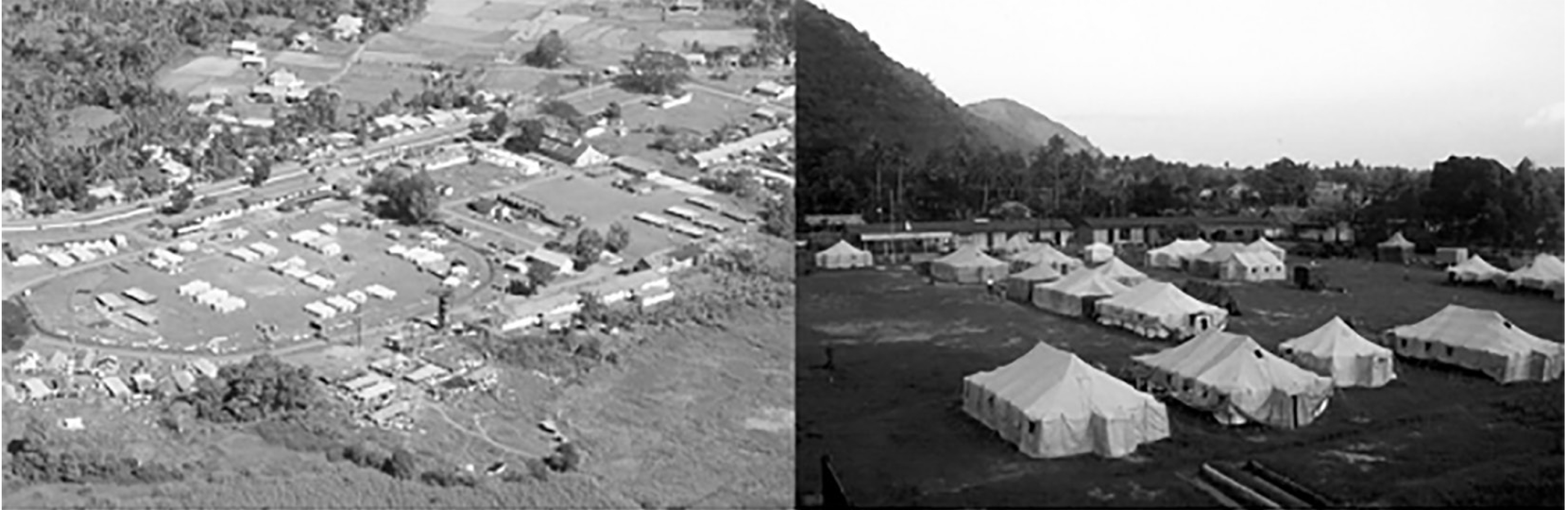 В начале января 2005 г., согласно решению Правительства Российской Федерации, в район стихийного бедствия были направлены медицинские специалисты Министерства обороны Российской Федерации. Российская военно-медицинская группировка (РВМГ) включала медицинский отряд специального назначения Приволжско-Уральского военного округа, а также группу медицинского усиления, в состав которой входили инфекционисты и эпидемиологи из Военномедицинской академии им. С.М. Кирова и учреждений центрального подчинения [2, 7]. Дислоцируясь в г. Банда Аче, РВМГ действовала на территории провинции Аче, расположенной на северной оконечности Суматры, в большей степени пострадавшей от природной катастрофы. Личный состав РВМГ насчитывал 163 человека, в том числе 35 военных врачей, 60 специалистов среднего медицинского звена, 68 военнослужащих из числа обеспечивающего персонала [2, 7]. Военно-полевой госпиталь был развернут на территории школы для подготовки младших командиров индонезийских сил обороны в непосредственной близости от мест временного размещения беженцев. Личный состав размещался в штатных палатках (унифицированная санитарно-барачная образца 1956 г. – УСБ-56, унифицированная санитарно-техническая образца 1956 г. – УСТ-56), а также в приспособленных помещениях (рис. 4).